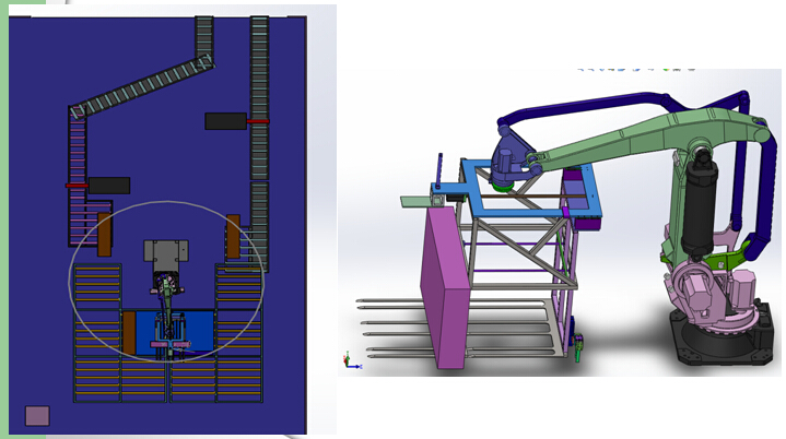 對于尺寸大、重量較重的產品,人工上下料不僅慢,而且不安全因素多;改用機器人進行整個流水線實現全自動化上料下料,碼垛裝箱,節約人力,提高效率,而且減少了生產安全隱患。提高企業生產標準。